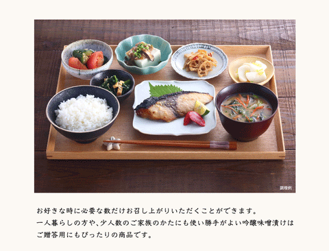 一人暮らしの方や、少人数のご家族の方にも使い勝手がよい味噌漬けは ご贈答用にもぴったりのお品です。