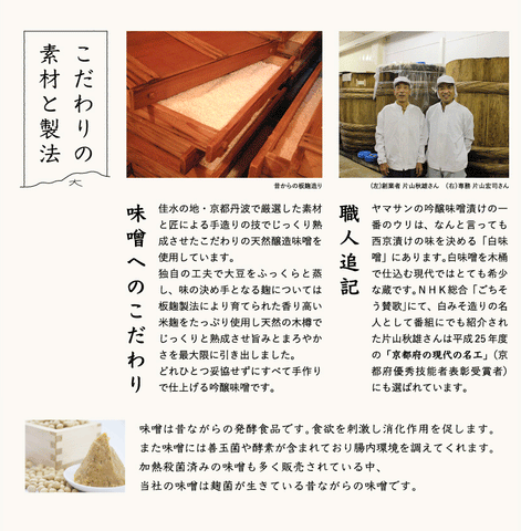 京都丹波で厳選した素材と匠による手造りの技でじっくり熟成させたこだわりの 天然醸造味噌を使用しています。
