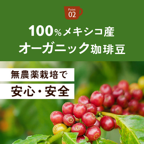 人体への悪影響がない有機JAS認定で安心・安全なメキシコ産オーガニック豆を使用しています。