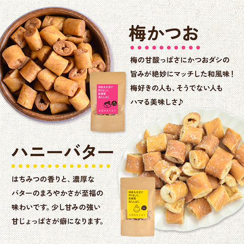 原材料名:大豆(国産)、こめ油、砂糖、食塩、かつお節粉末、粉末しょうゆ、デキストリン、かつお節エキス調味料、梅パウダー、植物油脂/調味料(アミノ酸等)、炭酸カルシウム、香料、(一部に小麦・大豆を含む)