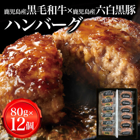 鹿児島 黒毛和牛 黒豚 ハンバーグ 80g 12個入