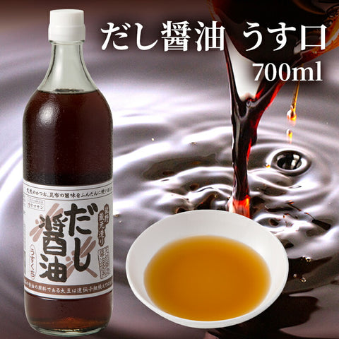 原材料名:うすくちしょうゆ(本醸造)、食塩、昆布エキス、砂糖、かつおエキス、発酵調味料、酒精、酵母エキス、(原材料の一部に大豆、小麦を含む)