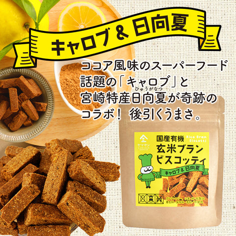 <div class="product_text01">名称:焼き菓子(キャロブ&日向夏)<br>原材料名:米粉(米(宮崎県産))、日向夏マーマレード、きび糖、米油、キャロブパウダー、アーモンドパウダー、米ぬか<br>内容量:40g<br>賞味期限:パッケージに記載<br>保存方法:直射日光・高温多湿を避け、常温で保存。<br>開封後はなるべくお早めにお召し上がりください。<br>加工者:株式会社ヤマサン 京都府宇治市宇治壱番 67 TEL.0120-31-4700<br><br>・本品製造工場では、乳成分・ごま・りんごを含む製品を生産しております。<br><br><b>栄養成分表示(40gあたり)</b><br>エネルギー:204.4kcal<br>たんぱく質:4.0g<br>脂質:11.4g<br>炭水化物:22.5g<br> -糖質 20.6g<br> -食物繊維 1.9g<br>食塩相当量:0.12g<br>(推定値)</div>