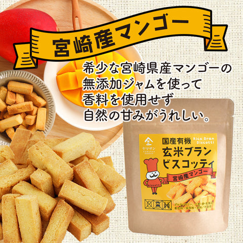 <div class="product_text01">名称:焼き菓子(宮崎産マンゴー)<br>原材料名:米粉(米(宮崎県産))、マンゴージャム、アーモンドパウダー、きび糖、米油、米ぬか<br>内容量:40g<br>賞味期限:パッケージに記載<br>保存方法:直射日光・高温多湿を避け、常温で保存。<br>開封後はなるべくお早めにお召し上がりください。<br>加工者:株式会社ヤマサン 京都府宇治市宇治壱番 67 TEL.0120-31-4700<br><br>・本品製造工場では、乳成分・ごま・りんごを含む製品を生産しております。<br><br><b>栄養成分表示(40gあたり)</b><br>エネルギー:198.4kcal<br>たんぱく質:3.2g<br>脂質:9.9g<br>炭水化物:24.6g<br> -糖質 23.8g<br> -食物繊維 0.8g<br>食塩相当量:0.04g<br>(推定値)</div>
