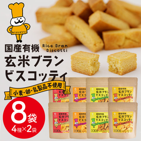 【お得なまとめ買い】国産 有機 玄米ブラン ビスコッティ 【4種類×2袋の8袋セット】