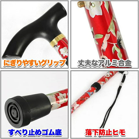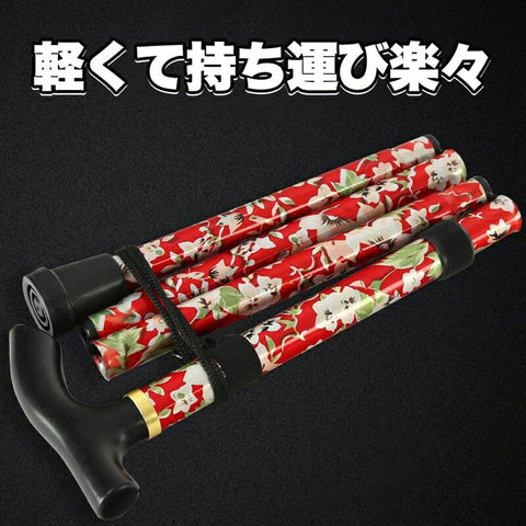 花柄 カラー が選べる 折りたたみ杖(高さ 83cm-93cm)