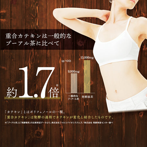 発酵させることで出来た重合カテキンが一般的なプーアル茶と比べて約2倍。ポッコリをスッキリに導きます。