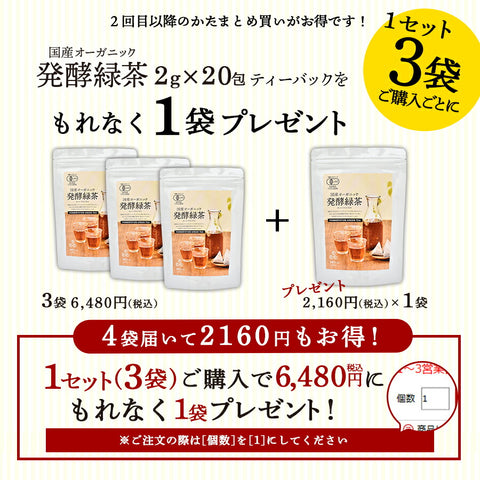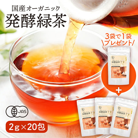 【3袋+1袋プレゼント】国産 オーガニック 発酵緑茶【2g×20包】