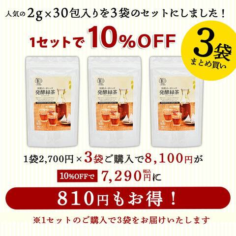 【まとめ買いで10%OFF】国産 オーガニック 発酵緑茶【2g×30包 3袋セット】