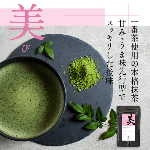 濃厚な緑、抹茶の香りが豊かで深みのある味わいの美(bi)。