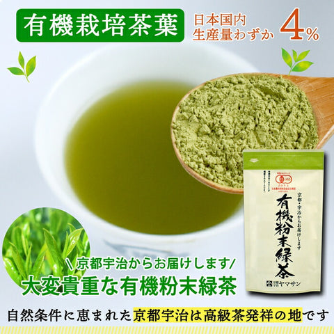 日本国内生産わずか4%の大変貴重な有機粉末緑茶です。