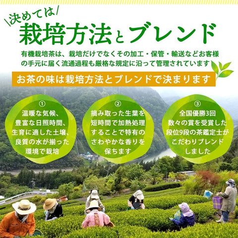 日本の生産者が有機JASの基準に基づいて生産したも安心安全な有機緑茶です。