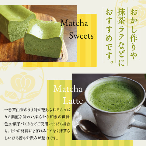 ケーキなどのお菓子やスイーツ、抹茶ラテなど、製菓用の抹茶パウダーとしてもどうぞ。