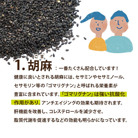 原材料名:黒胡麻(ミャンマー・メキシコ)、大豆、大麦