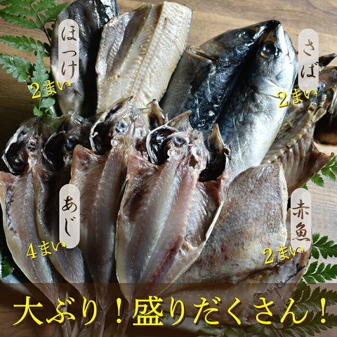 定番のホッケフィレ2枚、あじ開き4枚、赤魚フィレ2枚、さば開き2枚の4種10枚のセットです。