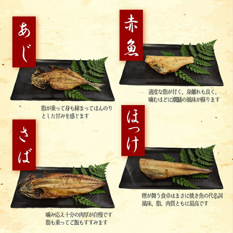 【緑茶干し干物 あじ、赤魚、さば、ほっけの4種類】