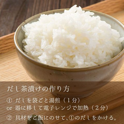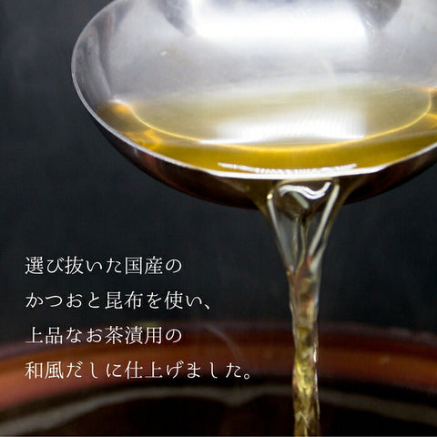 選び抜いた国産のかつおと昆布を使い、上品なお茶漬け用の和風だしに仕上げました。