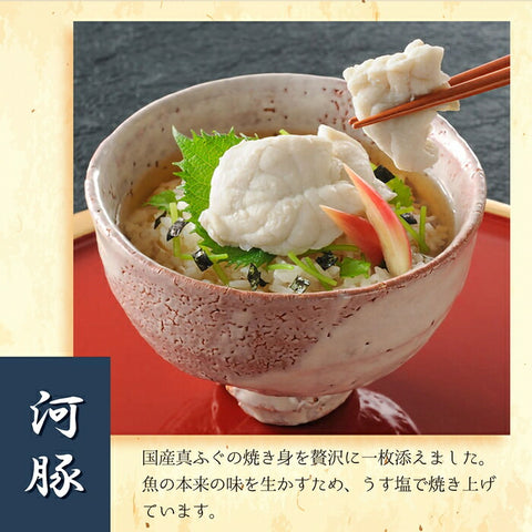 国産の真ふぐの焼き身を贅沢に1枚添えました。