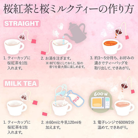 【ミルクを足して桜ミルクティー】お湯を注ぎ桜紅茶としても