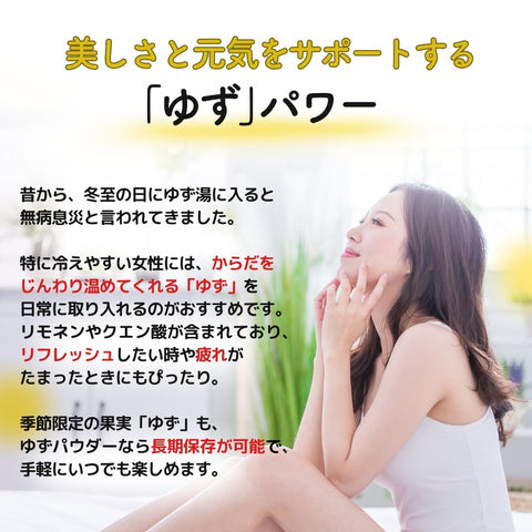 柚子の皮を原料とした一般的な柚子パウダーとはまた違った味わいが楽しめます。