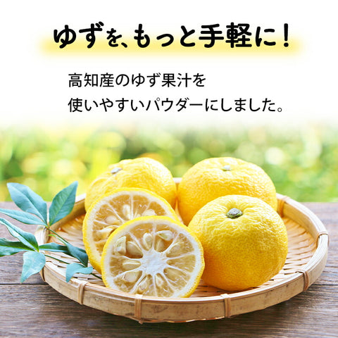 ゆず果汁を加熱して粉末にすることで、柑橘類の苦味を抑え、