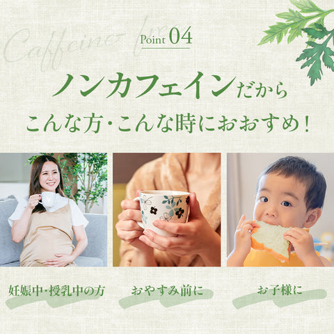 ノンカフェインですので、カフェインが気になる方にもおすすめです。