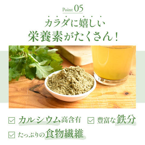 よもぎパウダーは、食物繊維やビタミンが豊富で、自然な栄養を毎日の生活にプラスしたい方におすすめです。